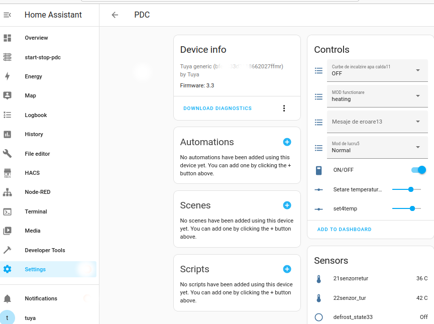 Este important de menționat că aceste instrucțiuni sunt valabile doar pentru integrarea pompei de căldură prin intermediul LocalTuya. Pentru alte tipuri de pompe de căldură sau alte tipuri de integrare, pașii pot fi diferiți și este important să urmăriți instrucțiunile specifice furnizate de producător sau de comunitatea Home Assistant.